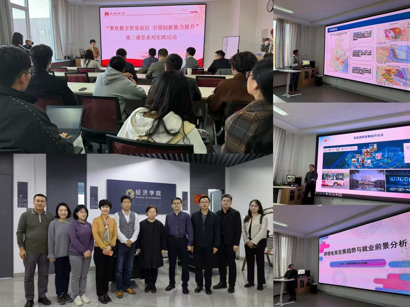 于11月1日举办“聚焦数字贸易前沿引领创新能力提升”第二课堂系列实践活动并开展第三期线下讲座。活动邀请了天津自贸试验区创新发展局政策研究中心金海平副主任、中新天津生态城自贸联动创新局邢友聪副局长、天津既明跨境产业互联网发展有限责任公司总经理宫振娜。无码av