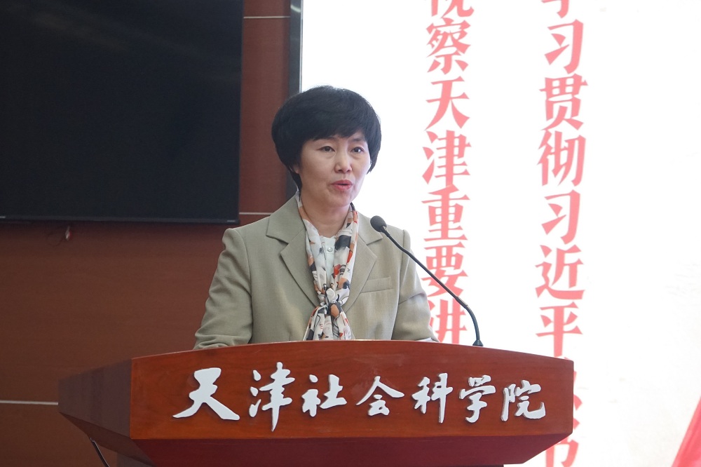会上,围绕贯彻落实中央和市委决策部署,进一步加强社科理论工作,市委宣传部相关领导提出要聚焦凝心铸魂,坚持不懈深化党的创新理论体系化、学理化研究阐释;要牢记殷殷嘱托,坚持不懈深学细研习近平总书记视察天津重要讲话精神;要坚持守正创新,坚持不懈推动构建中国哲学社会科学自主知识体系;要加强津派文化研究中心建设,坚持不懈深化津派文化研究、推动文化传承发展。