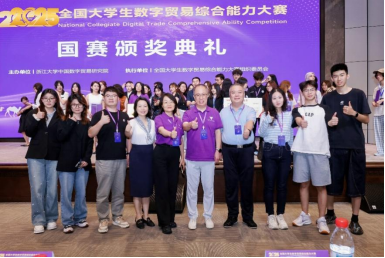 全国大学生数字贸易综合能力大赛由浙江大学中国数字贸易研究院主办,已连续成功举办四届,累计吸引1213所高校、60000余名师生参与。本届大赛中1688大学生AI创业赛道共有240所院校的1198支团队参赛,由姜思宇等5名同学组成的“呱唧呱唧”队获该赛道一等奖及1688数创铜星;由周婧怡等5名同学组成的“TradeFlux”队获该赛道二等奖。尼奥尼跨境直播赛道共有177所院校的661支团队参赛,由佟欣竹等5名同学组成的“DDL战神队”获该赛道二等奖。经济学院教师刘珅获优秀指导教师奖。