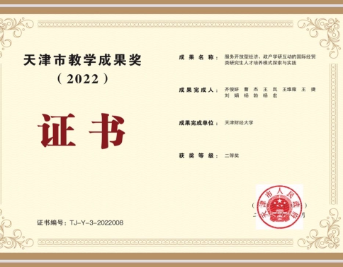 作为国家级一流专业负责人带领教师积极进行专业和学科建设,先后入选获批天津市经济学科拔尖学生培养基地、天津市教学团队和天津市一流课程,主持完成的教学成果获得天津市教学成果二等奖。