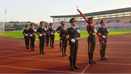 天财国旗护卫队踏着铿锵且整齐划一的步伐,执旗昂首阔步入场。当雄浑嘹亮的国歌奏响,鲜艳的五星红旗在晴空下沿旗杆徐徐攀升。全场师生昂首挺胸,目光灼灼地追随着国旗的轨迹,行注目礼。这一刻,心中涌动的不仅是对祖国发展征程的崇高敬意,更是一次爱国主义情怀的热烈激荡与升华。