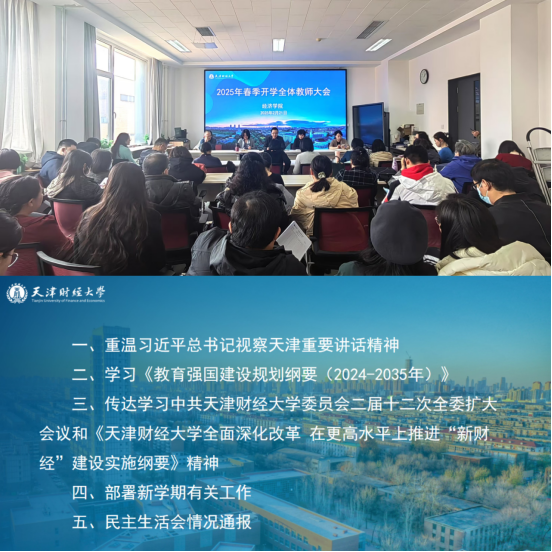 委员会二届十二次全委扩大会议精神,并以《全面深化改革 加快推进学院创新发展》为题作理论与形势政策宣讲。韩书记要求全体教师要认真贯彻落实党的教育方针,聚焦数智时代“新财经”建设,积极响应学校全面深化改革的号召,齐心协力、众志成城,求真务实、担当作为,以改革创新的精神、精益求精的态度、团结协作的作风全力完成好新一年的各项工作任务。