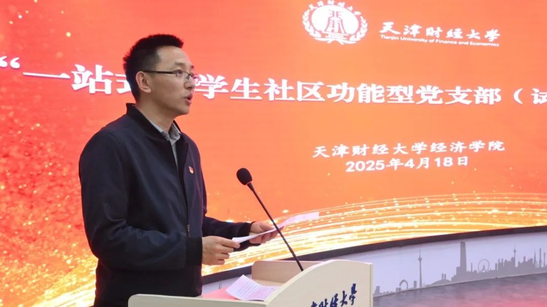 党委书记韩廷波宣读了在学院内组建“经贸先锋”、“学术尖兵”、“逐梦青春”三个功能型党支部的决议,并对无码av
