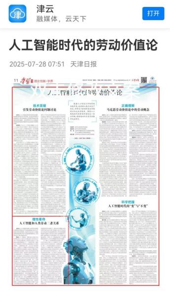 《天津日报》、津云报道了无码av 荣岩副教授“理性看待人工智能和人类劳动二者关系”的观点